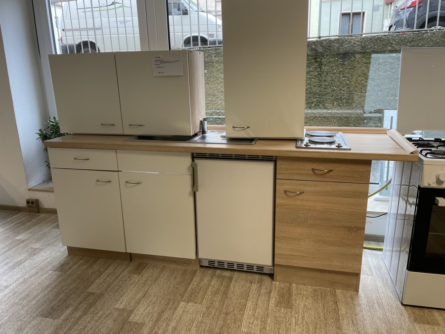 Kleine Küche mit Kühlschrank 2 Kochplatten Mischbatterie Länge 2,23m Nur 499€